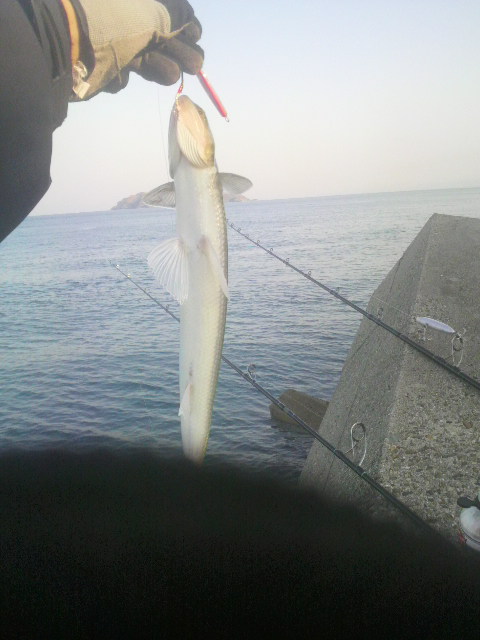 その後も反応無く、あわよくばシーバスでも・・・とキャストしていた鉄板バイブにヒットするも即バラシ (;´д`)